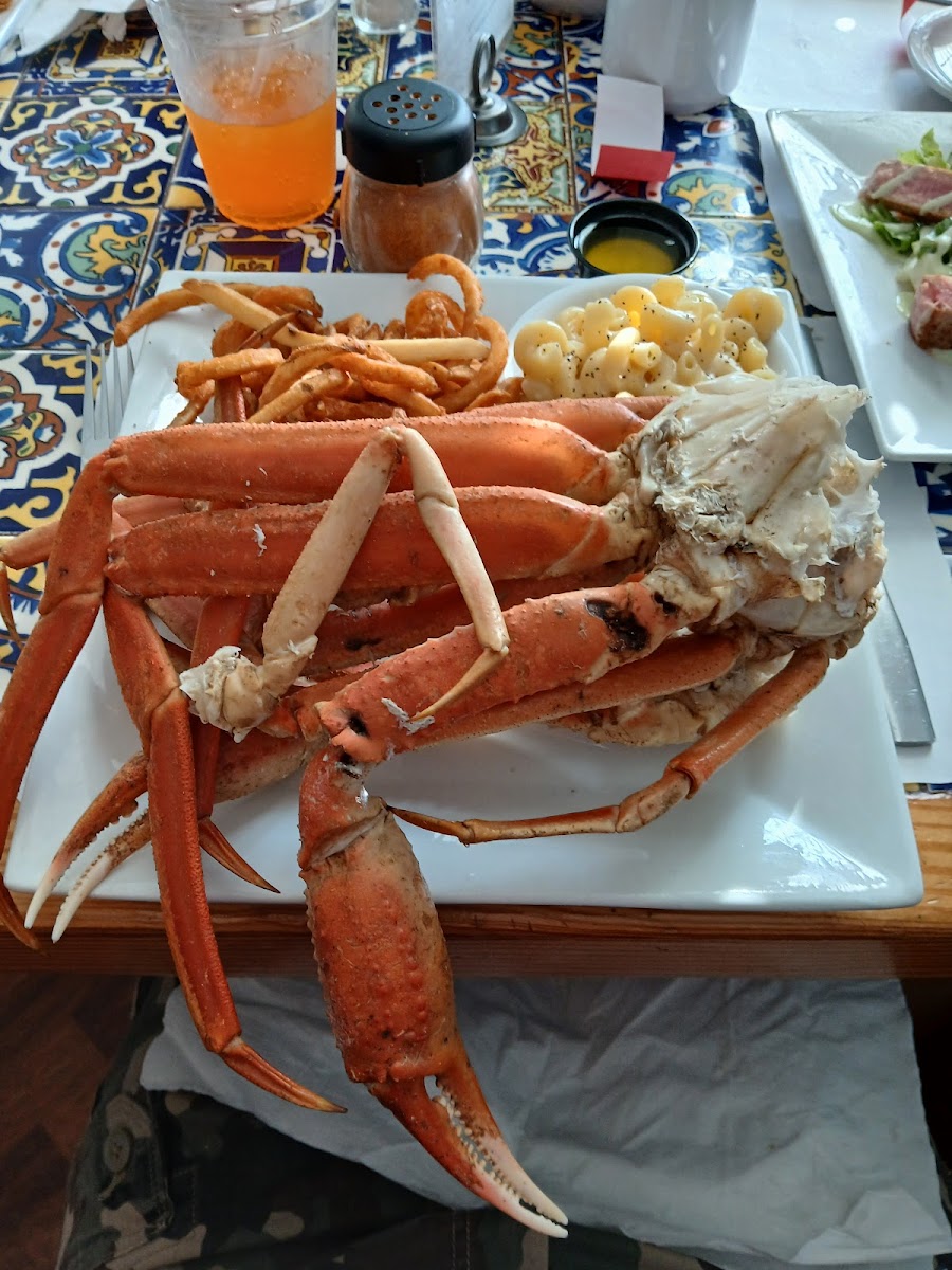 Everything was top notch, crabs were large, hot delicious. They accidentally gave our order to another table and gifted us 8 more huge crabs. Visiting family from Germany and it was their first experience eating them, as well as, Cole slaw, hush puppies and gigantic, incredibly delicious crab cakes. This place is super friendly, outside dining is like your back yard, which I loved. I will be going again and again. I've told so many people about this gem. Very affordable for seafood. Great menu choices, server was excellent and friendly.
