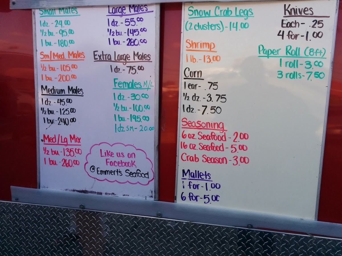 Emmert’s Seafood offers a menu that reflects the warm, casual atmosphere of a classic crab house, perfect for savoring fresh, well-prepared seafood in a relaxed setting. The menu is designed for enjoying both simple and hearty meals, whether you're stopping in for a satisfying lunch or settling down for a leisurely dinner with friends and family.